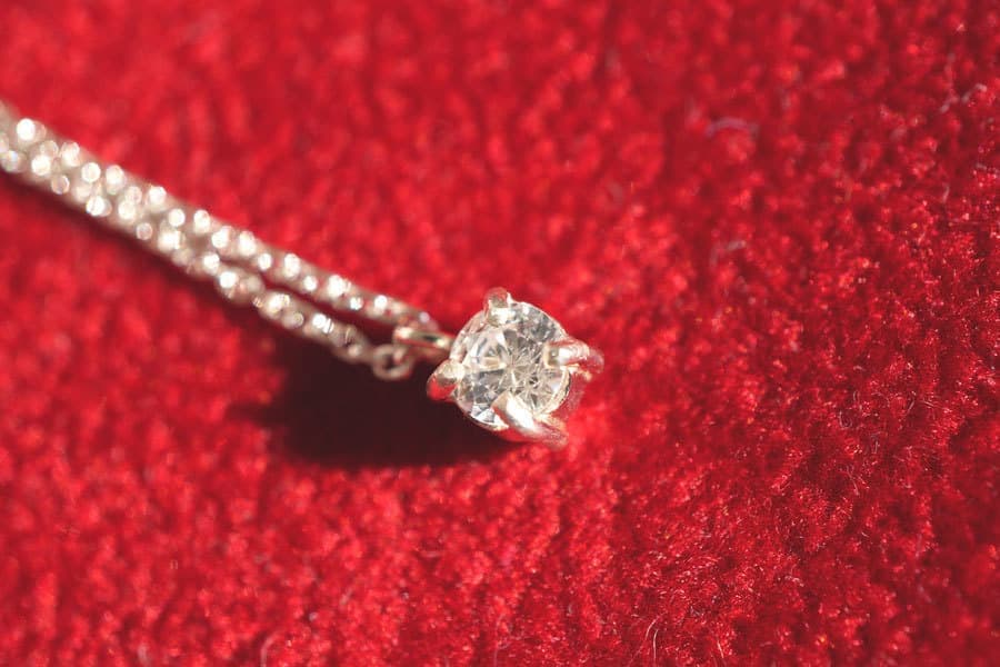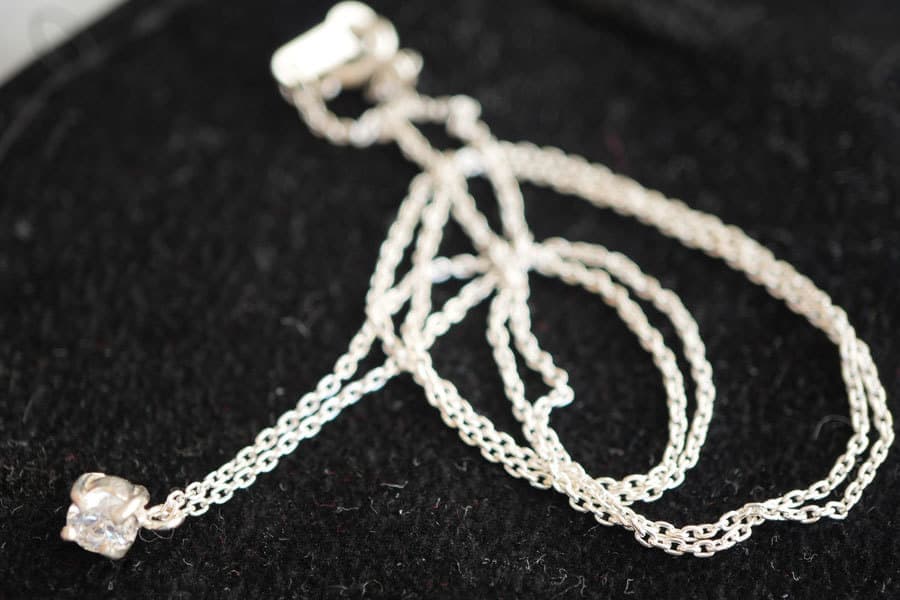 鎖骨が綺麗に見えるようにシンプルな1粒ネックレスにしました。日常からフォーマルなシーンまでお使いいただけます。